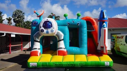 Les petits astronautes en herbe pourront sauter, grimper et glisser sur ce jeu gonflable avec son toboggan intégré : sensations garanties pour amuser les enfants lors d’une fête d’anniversaire, communion, baptême en Martinique…